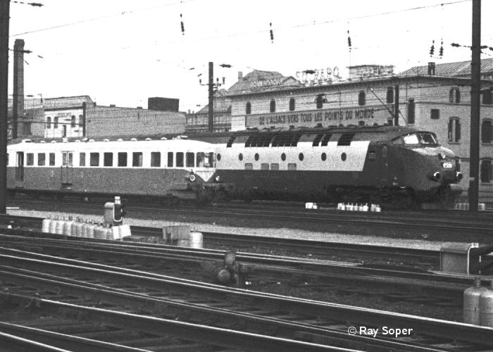 Netherlands TEE DMU. An unidentified TEE DMU with an unknown diesel multiple unit at Strasbourg on August 2, 1967.