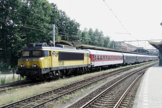 NSR 1738 with two EETC Bcm coaches and Centralbahn coaches as 'Sziget Express' train 13089 (Amsterdam Centraal - Budapes Nyugati pu). Houten, Sunday 8th August 2010. Photo © Rogier Peeters (rogierpeeters@gmail.com) |