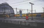 Amsterdam Centraal station, The Netherlands, March 2000. Two of the newer EMU classes of NS can be seen here: the IRM (left) and the mDDM (right). IRMs are double-deck trains for long-distance trains, while the double-deck mDDM are used for regional trains on lines with many passengers. The mDDM motor cars (one seen here) are unusual: seating is only on the upper level, the electrical equipment is installed below. The units have six powered axles placed in three (!) bogies. There is only one motor unit per train, a driving trailer is on the other end. Photo and scan: Klaus von der Heyde |