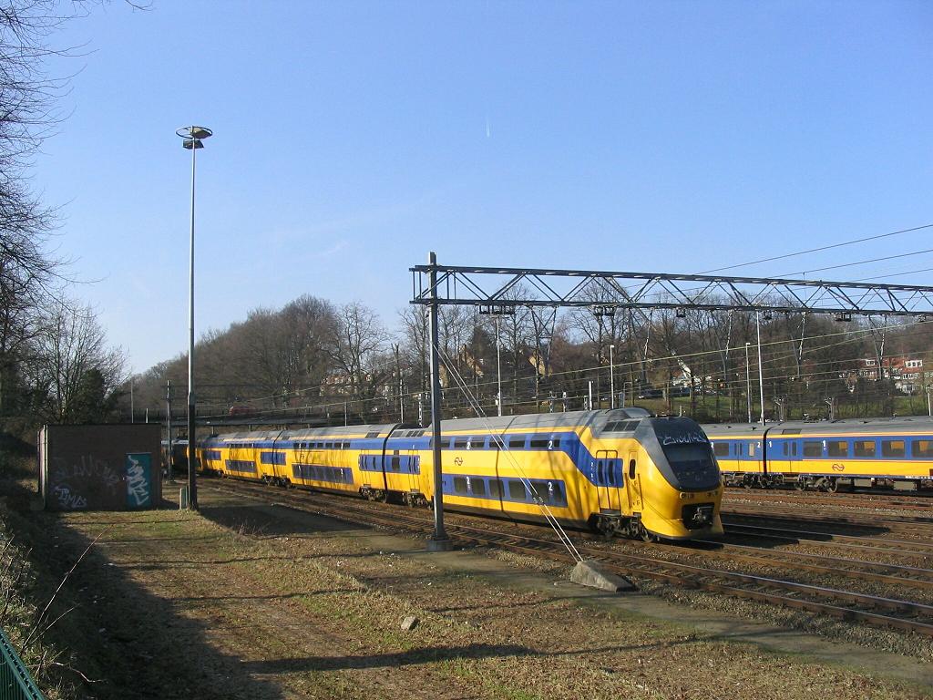 From 15th - 21st October 2005 no trains could run on the Den Haag Centraal - Gouda line due to engineering works. The 'Noord-Oost' intercity services (from Den Haag to Leeuwarden / Groningen and Enschede) were diverted via Schiedam and Gouda and only ran between Den Haag Centraal and Utrecht, where passengers had to change to regular trains. Instead of the usual ICM 'Koploper' EMUs, the diverted trains were run by IRM double deck stock.