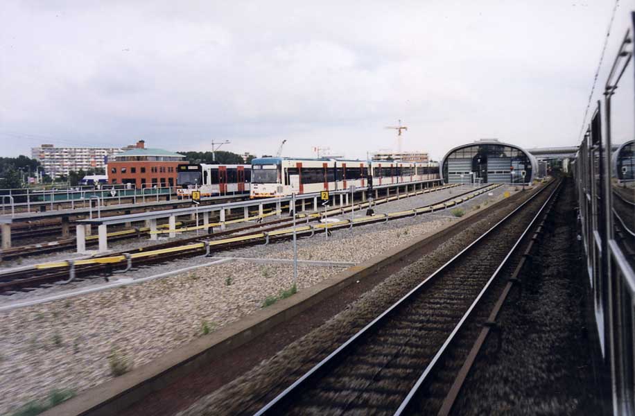 Amsterdam metro along the NS railtrack to Arnhem. Photo shot from fast train 203 Amsterdam CS - Basel. July 98