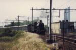 Date : 24 may 1996 Place : Near Hollandsche Rading Train : Steamlocomotive 3737 during it's first official journey since it's major revision. The trip started in Tilburg and ended in the Railway Museum in Utrecht. Photographer: Arno Peters (petersa@worldaccess.nl) |