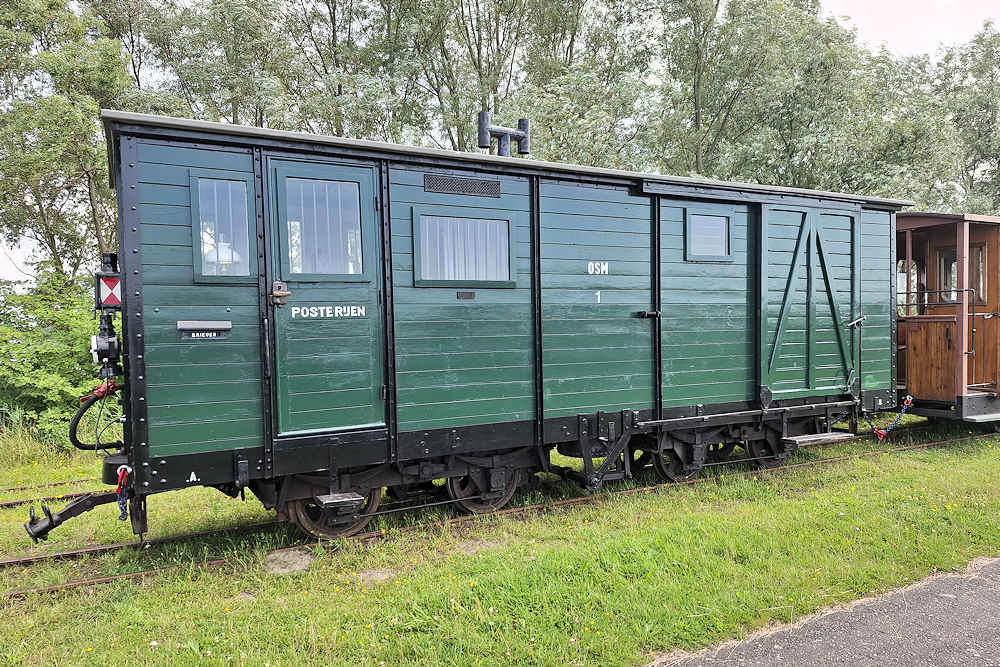 Stoomtrein Katwijk Leiden/National Narrow Gauge Museum - The Netherlands 125 years old postal van of the Ooster Tramweg-Maatschappij Zeist-Arnhem, originally Cape gauge (1067mm) but now regauged at 700mm gauge in use in the museum tram at Stoomtrein Katwijk Leiden. Katwijk, 27-07-2024 Photo by Marco van Uden |