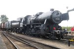 Former German Kriegslok 52 3879 with ex-BBÖ LOkalbahnwagen on a shuttle trip to Apeldoorn just has left Beekbergen, the depot of the Dutch steamtrain museum society VSM om 4 september 2007.