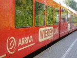 not replaced. Arriva trainset GTW 2/8 nr. 301 is seen at Weener on 6 november 2018. It has advertisements for the WiederLine (Groningen-Leer).