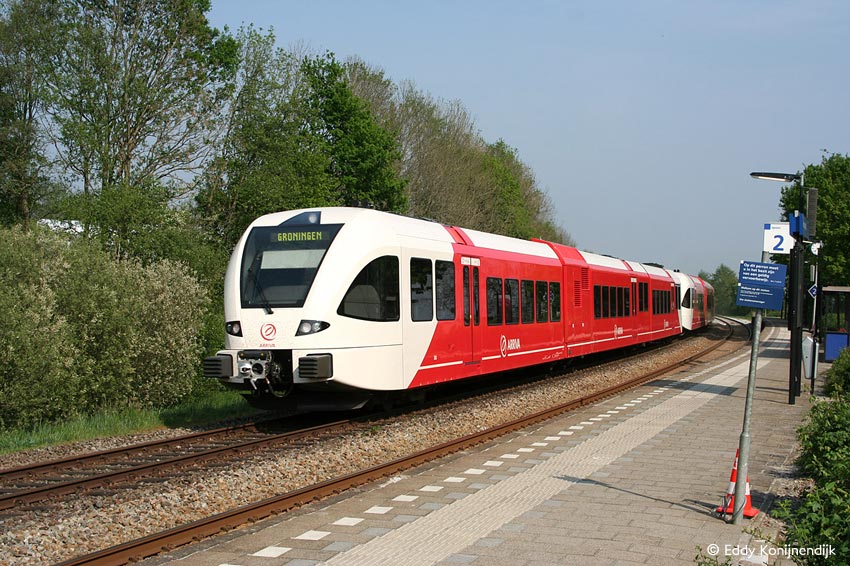 Arriva - The Netherlands Diesel trainset 301 (Stadler GTW2/8) in the most northern station of The Netherlands: Roodeschool. Roodeschool, 24-07-2012 Digital photo by Marco van Uden |
