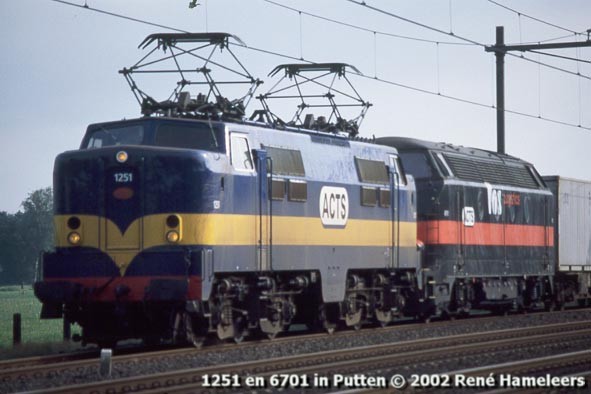 ACTS 1251 en 6701 pulling a containertrain in Putten. ACTS is a Dutch private railway