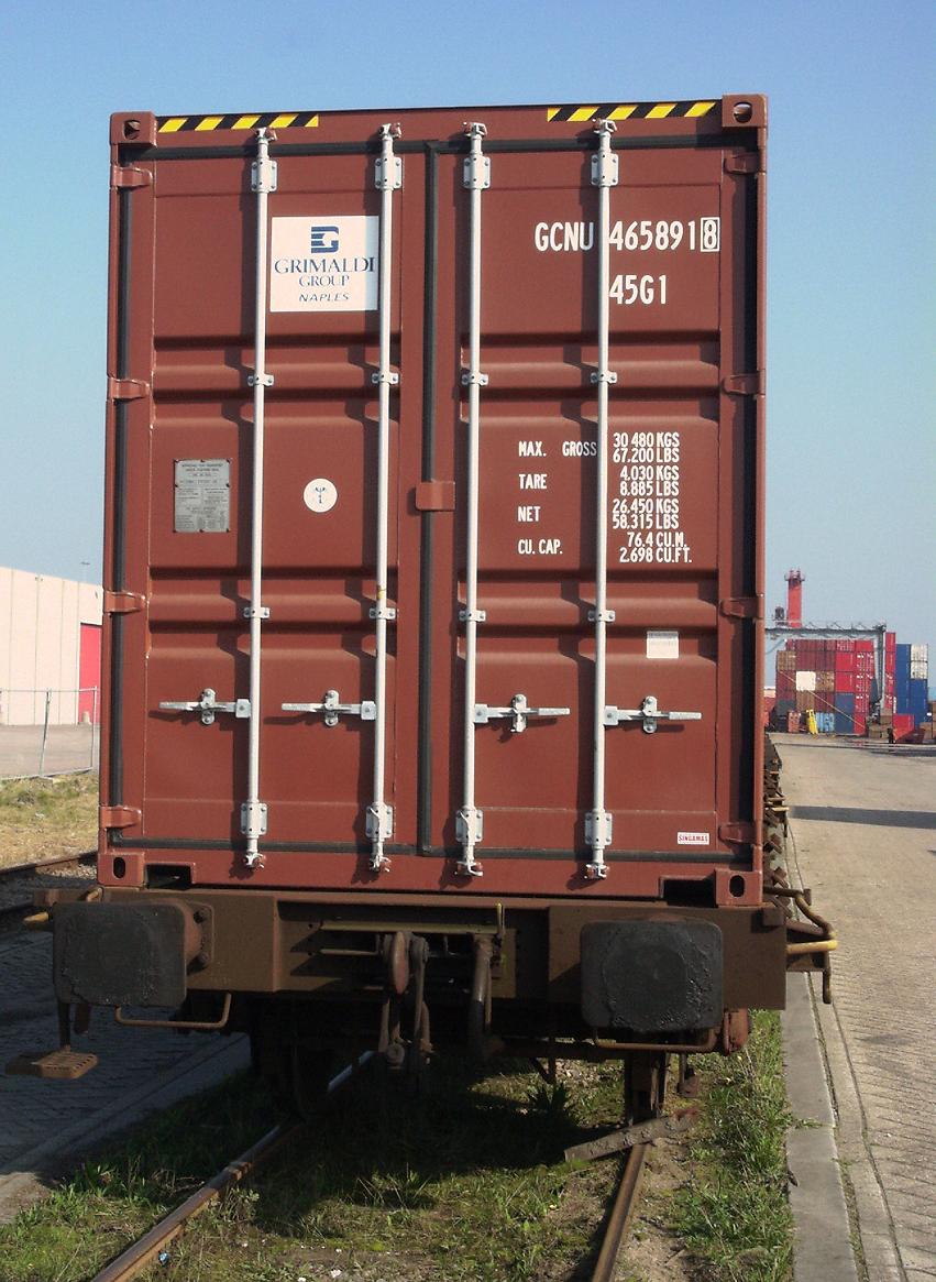 | Lgns with a 40ft "Grimaldi" Container. (Photo & copyright: Arnold van Heyst, Netherlands, E-mail:Arnold van Heyst) |