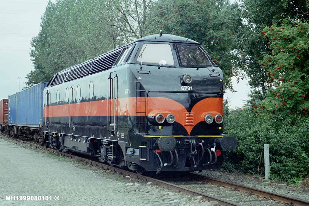 ACTS 6700 ACTS 6701 in yellow NMBS livery at Barendrecht on the 18th of June 1999. Now the 6701 is in black "VOS Logistics" livery.