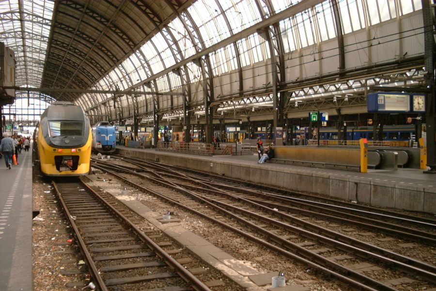 Amsterdam Centraal. Heading westward toward Sloterdijk, Schiphol, Den Haag, Rotterdam and parts further south.