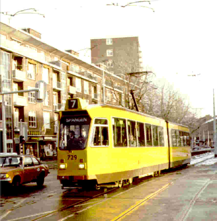 Rotterdam - Goudsesingel, 1985; articulated tramcar 729 on line 7.