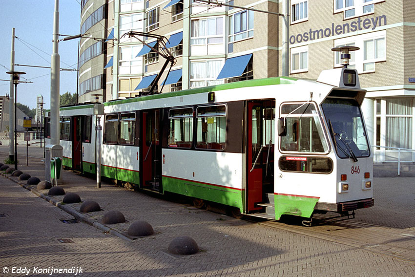 Tram Rotterdam - 846 Triebwagen 846 auf Linie 4 an der Centraal Station am 17. Oktober 2004.