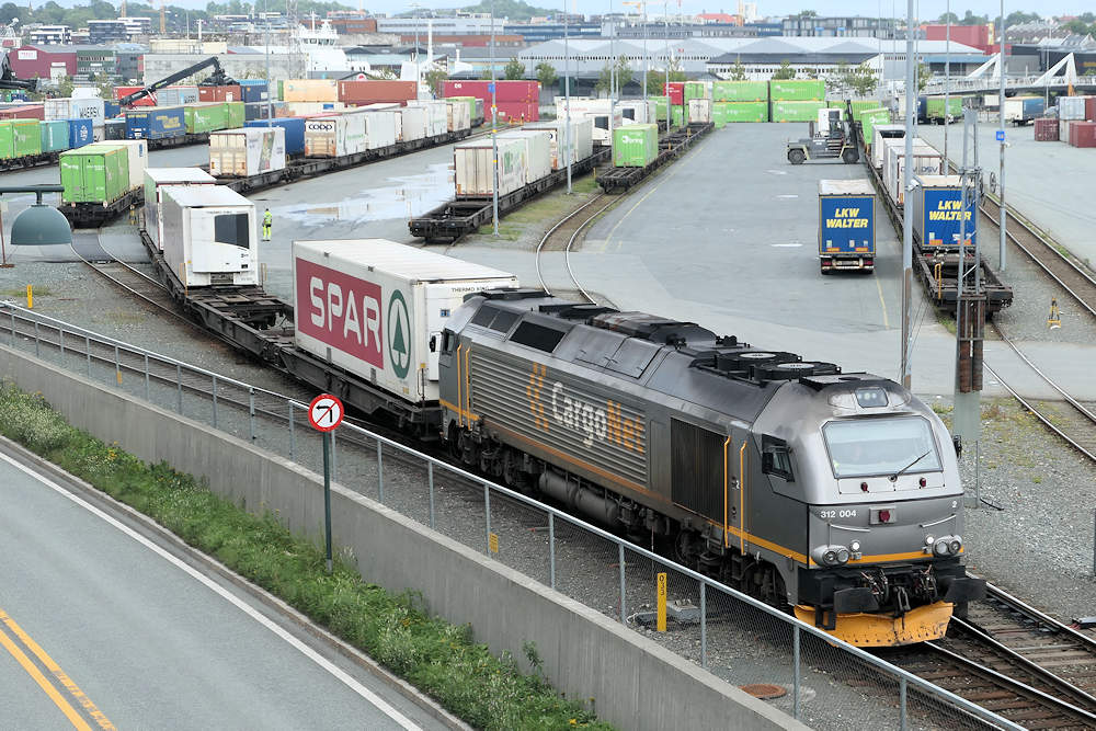 CargoNet - Norway Large diese locomotive 312 004 is seen shunting in the container terminal in Trondheim. Trondheim, 11-08-2022 Photo by Marco van Uden |