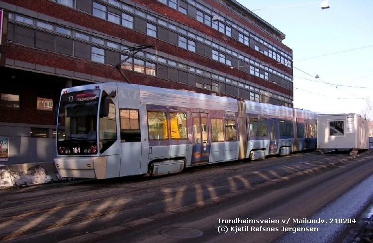 Oslo tram type SL95 no 164 at a temporary end station near Sinsen i northern Oslo. The line is shortened down due to the construction of the underground circle line.