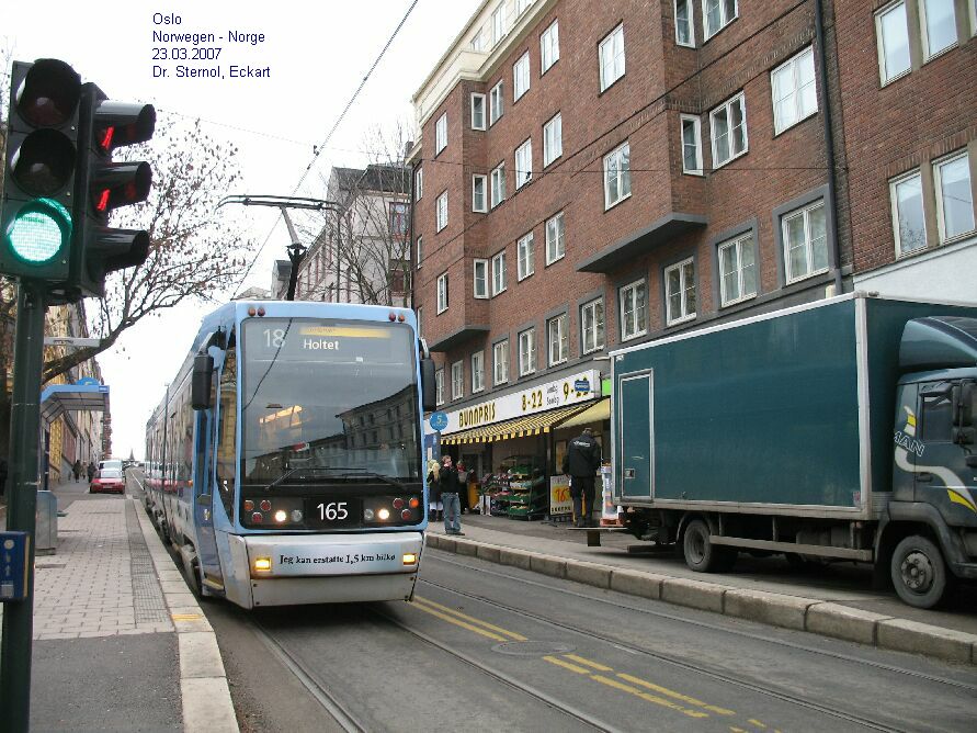 | IMG 5213 Oslo 23.03.07 Tram 166, Linie 13, an der stadtwärtigen Hst. Solli. Dr. Sternol, Eckart (Foto) |