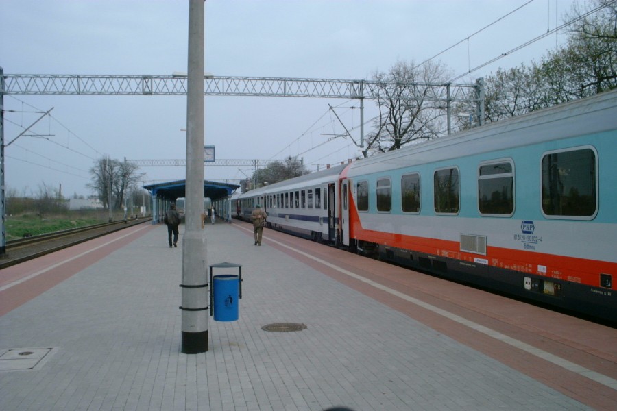21 April 2002, Rzepin, Poland Berlin-Warszawa-Express waiting in Rzepin station. It is interesting to compare the two liveries.