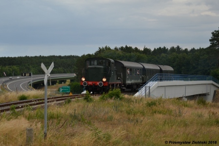 SM30-507 with a tourist train to Sobotka Zachodnia is seen before departure from Wroclaw Gl., Poland, 14.10.2018. The shunter is the property of the Wroclaw Club of Railway Enthusiasts whereas the historic carriages were borrowed from the Jaworzyna Slaska Museum of Industry and Railway in Silesia.
