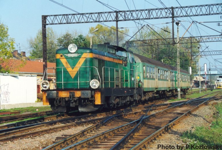 | SP42-046 with a passanger train to Chabowka leaving Nowy Sacz (21.10.2001). photo: Peter Kozlowski, e-mail: pkozlowski78@o2.pl |