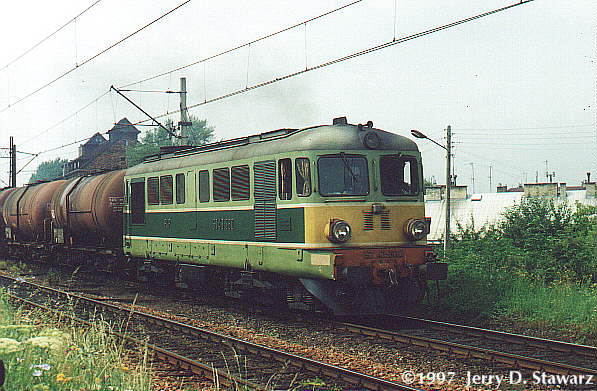 Romanian diesel freight locomotive (made under licence of Suiss Brown-Boveri), goes to Jaslo Rafinery for oil cars (August 14, 1997).