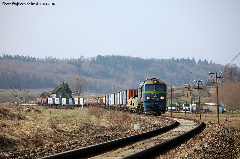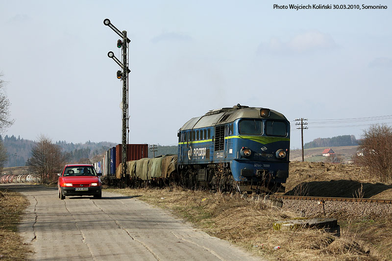 Polskie Koleje Panstwowe (PKP Cargo) ST44-1099 with a freight train to Gdynia Port 30.03.2010, Somonino Photo W. Kolins |