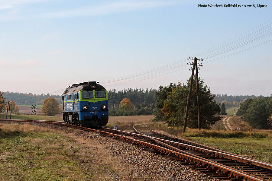 PKP Cargo ST44-1208 is going from Lipusz to Koscierzyna 17.10.2016, track Lipusz - Lubiana |