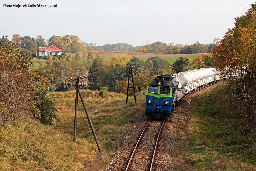 PKP Cargo ST44-1208 is going from Lipusz to Koscierzyna 17.10.2016, track Lubiana - Garczyn |