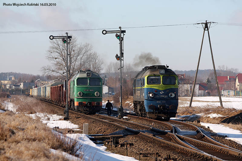 Polskie Koleje Panstwowe (PKP Cargo) ST44-1213+668 16.03.2010, Zukowo Wschodnie Photo W. Kolins |