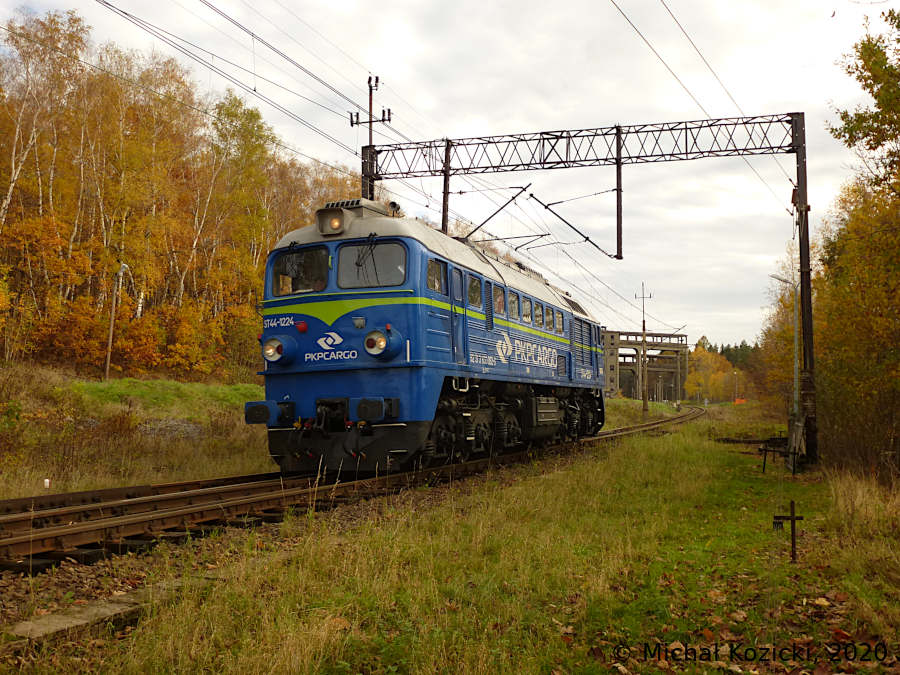 PKP Cargo ST44-1224 is running empty through Rebiszow, Poland, 04.11.2020.