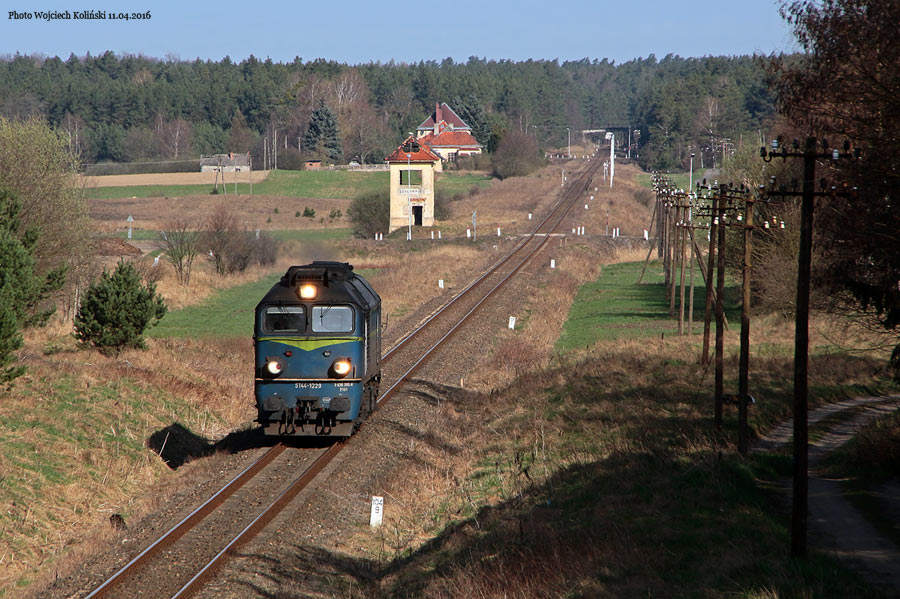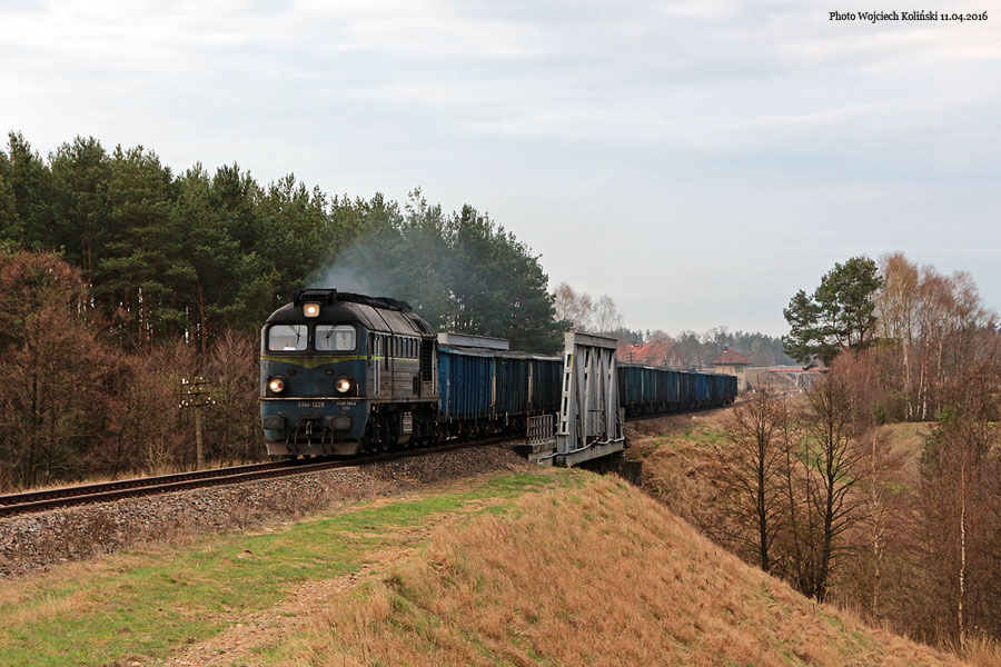 PKP Cargo ST44-1229 with the freight train Lipusz - Szczecinek 11.04.2018, track Karsin - Czersk Photo W. Kolins |