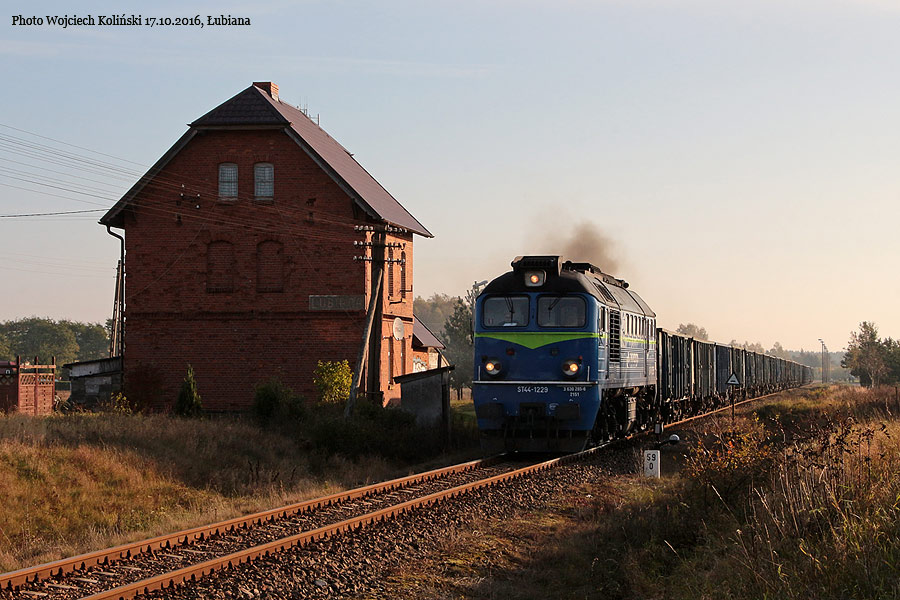 PKP Cargo ST44-1229 is going from Lipusz to Bydgoszcz 08.11.2016, track Koscierzyna - Podles Photo W. Kolins |
