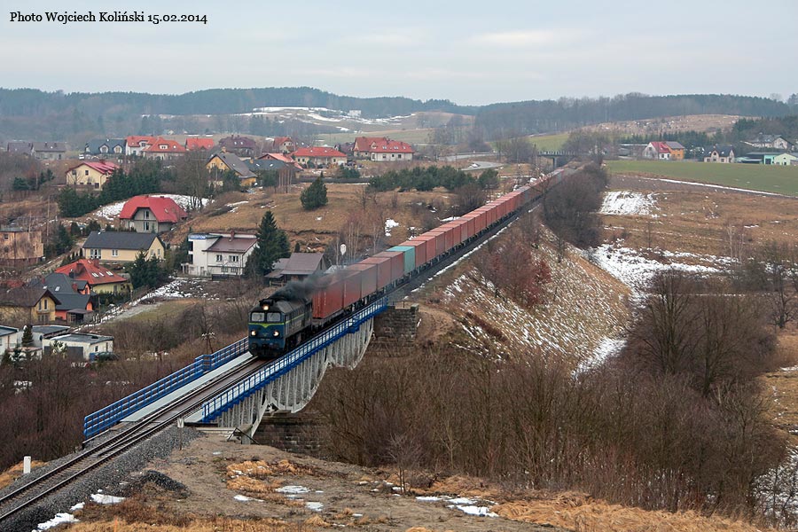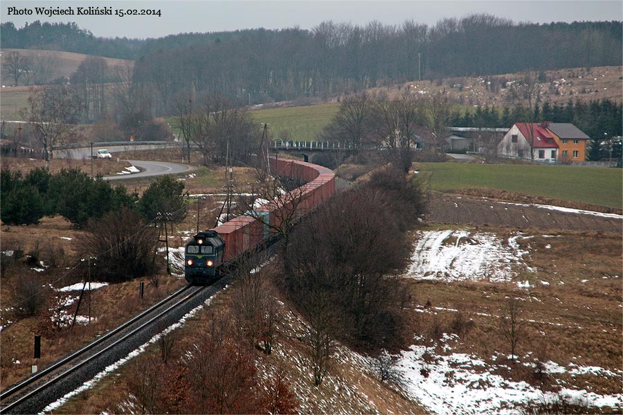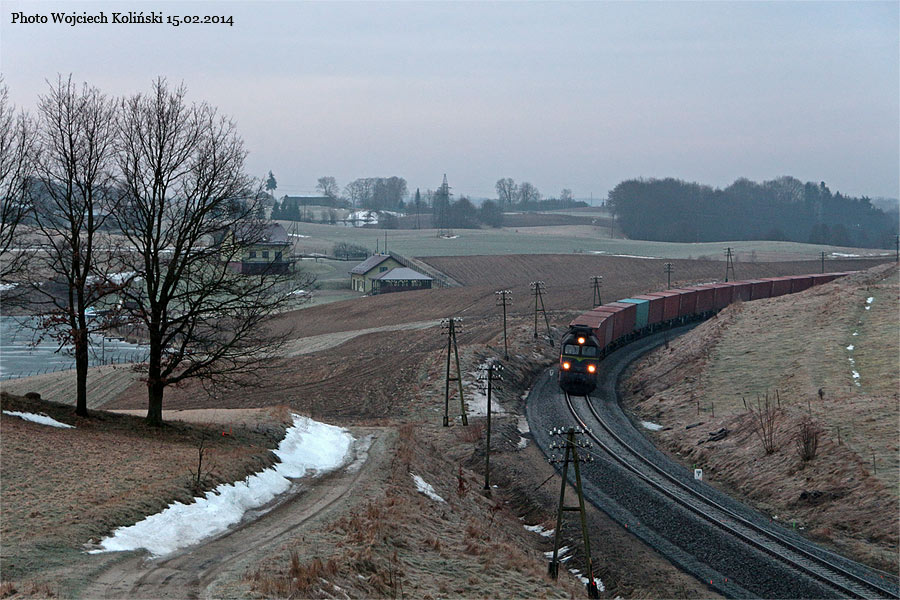 PKP Cargo ST44-1233 with a freight train Gliwice - Gdynia Port 15.02.2014, track Koscierzyna - Skorzewo |