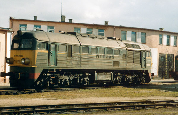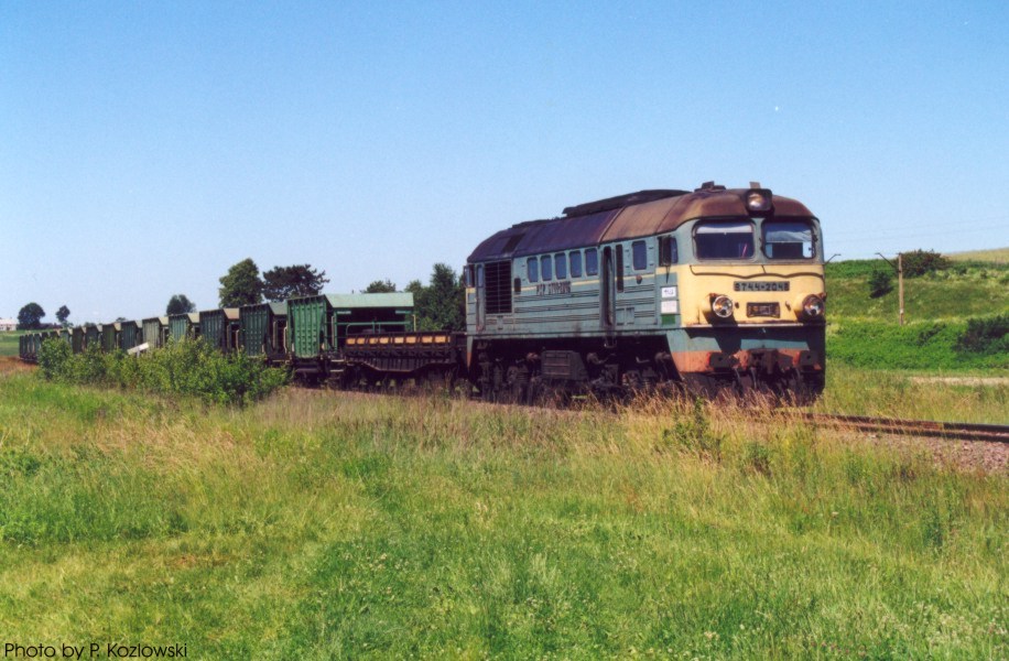 ST44-2023. ST44 numeration of 2xxx range means that a locomotive works on wide gauge tracks. This ST44-2023 received normal gauge boogies just to come from Braniewo (nearby Polish - Russian border) to Inowroclaw, probably for repairing.