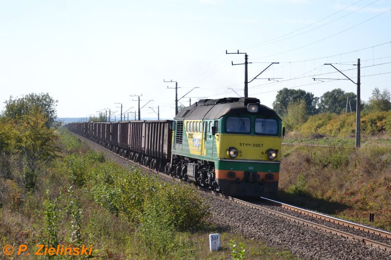 ST44-2057 with a cargo train on broad track near station Potok ; 30.09.11