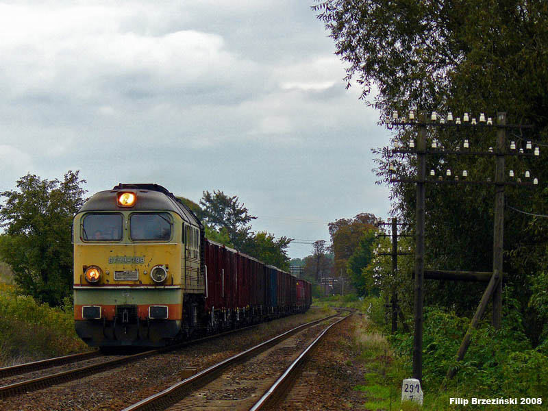 Polish State Railways (PKP) ST44-798 with freight train from Krzyz to Kostrzyn left Gorzow Wlkp. Wieprzyce and is on it's way to Kostrzyn. Gorzow Wlkp. Wieprzyce, 20.09.2008
