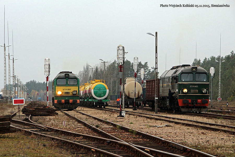 PKP Cargo ST44-862 is coming from Czeremcha to Siemianowka and ST44-1103 (deep side) 05.11.2015, Siemianowka |