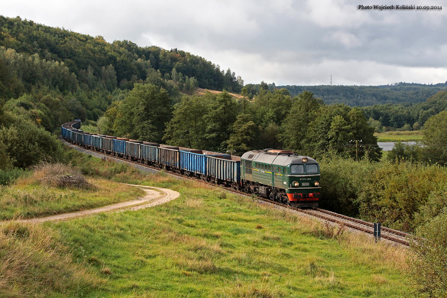 Polskie Koleje Panstwowe (PKP Cargo) ST44-1103 with a freight train Prefabet Oslawa Dabrowa - Lipusz - Koscierzyna 12.09.2014, Lubiana Photo W. Kolins |