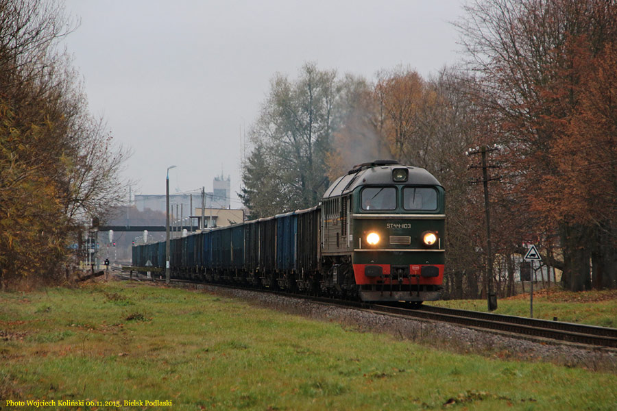 PKP Cargo ST44-1103 with a freight train Niemojki - Sokolka 05.11.2015, Bielsk Podlaski |
