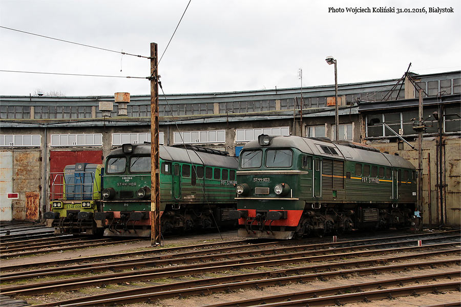 PKP Cargo ST44-1103, ST44-1108 and ST48-008 (ex SM48-044) 31.01.2016, Bialystok |