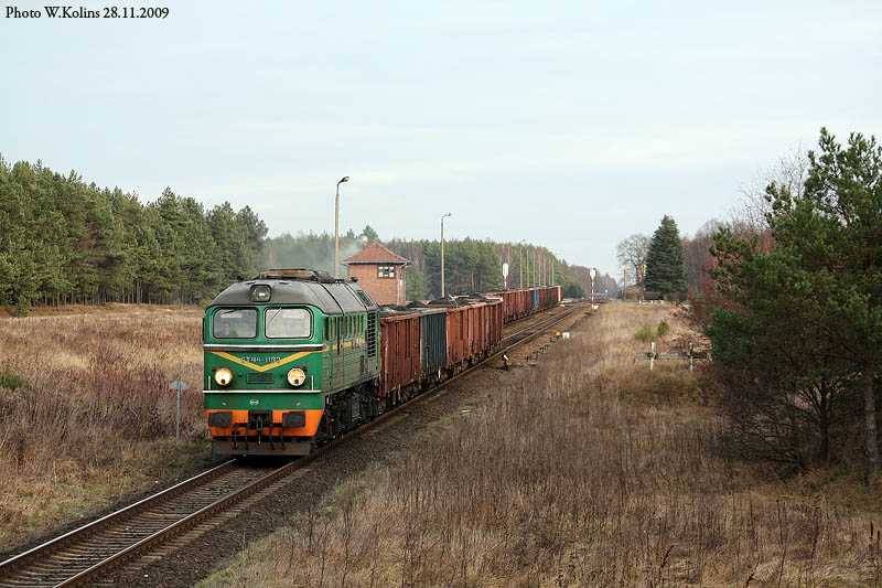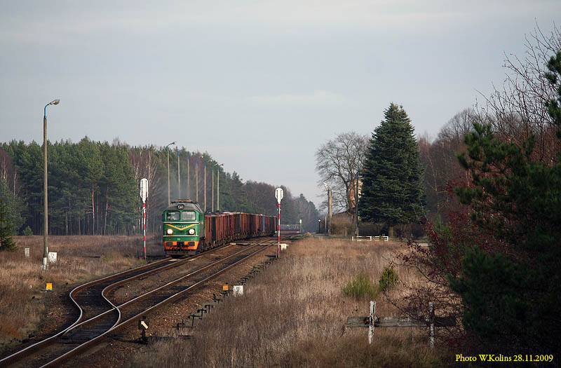 Polskie Koleje Panstwowe (PKP) ST44-1103 with a freight train Zajaczkowo Tczewskie - Chojnice 28.11.2009, track Czarna Woda - Lag Photo W. Kolins |