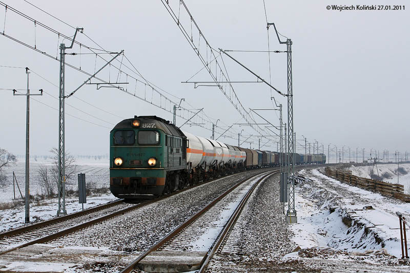 Polskie Koleje Panstwowe (PKP Cargo) ST44-927 with a freight train Malbork - Braniewo 18.01.2011, Mlynary Photo W. Kolins |