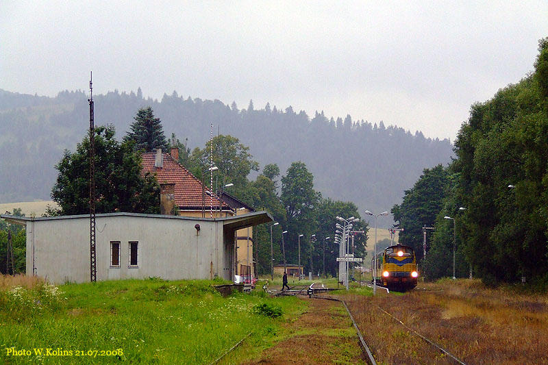 Polskie Koleje Panstwowe (PKP) SU42-521 with a passenger train Sanok - Chirow (Ukraine) 21.07.2008, Kroscienko Photo W. Kolins |