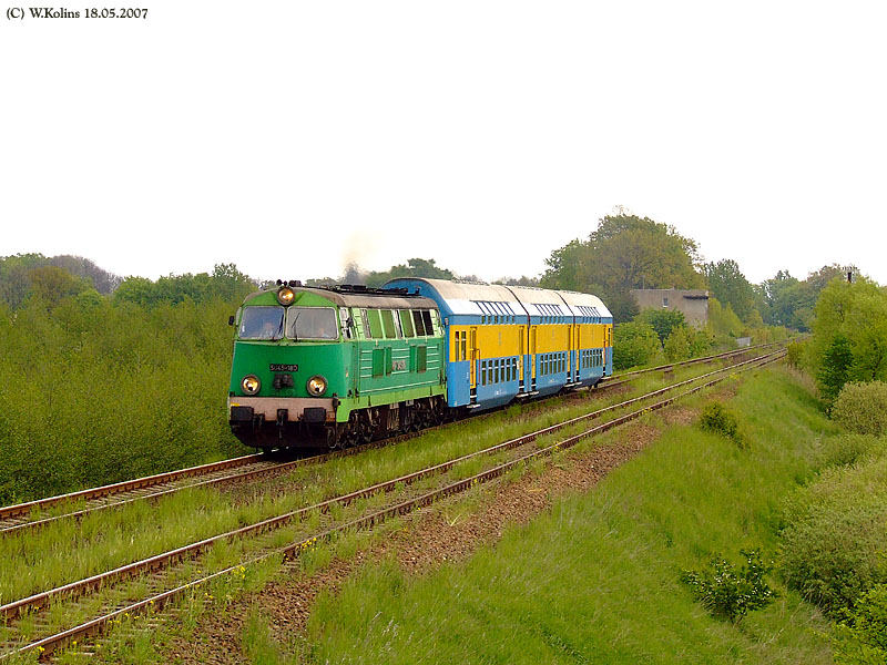 Polskie Koleje Panstwowe (PKP) SU45-180 with a passenger train Tczew - Chojnice 18.05.2007 track Szpegawsk - Starogard Gdanski Photo W.Kolins kolins@orange.pl |