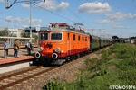 Electric locomotive EP05-23 with special train Warszawa-Czestochowa pass by signal tower in Czestochowa Stradom. 15.10.2005