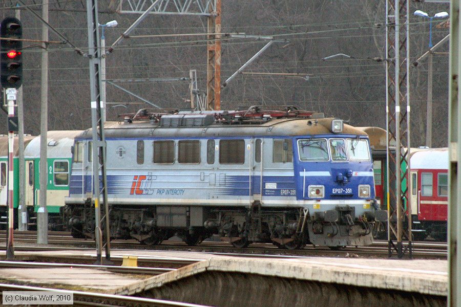 PKP - EP07-351 Lok EP07-351 im Bahnhof Szczecin Główny am 18. März 2010.