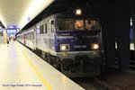 An electric locomotive EP 07-391 of PKP ( Polskie Koleje Panstwowe / Polish Railways) at railway station Warszawa Wschodnia with IC 5332 "Kochanowski" from Bydgoszcz to Rzeszow.