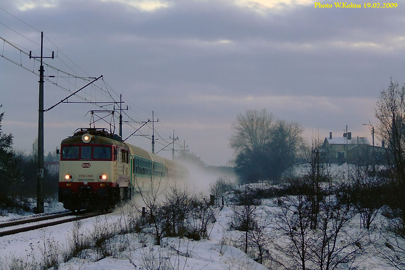 Polskie Koleje Panstwowe (PKP) EP07-1061 (ex EU07-464) with a fast train "Bryza" Szczecin - Olsztyn 19.02.1009, track Luzino - Goscicino Photo W. Kolins |