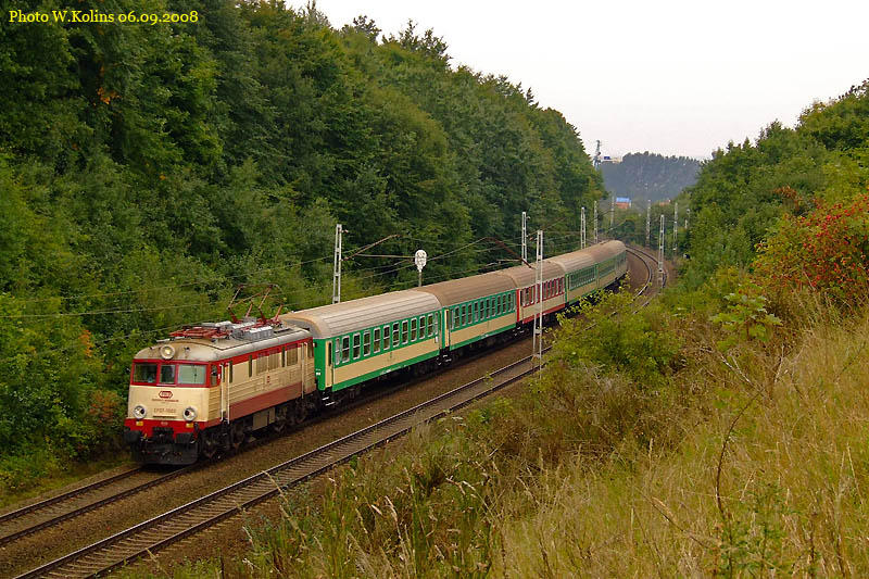 Polskie Koleje Panstwowe (PKP) EP07-1063 (ex EP07-350) with a fast train "Gryf" Szczecin - Olsztyn 06.09.2008, track Reda Pieleszewo - Reda Photo W. Kolins |