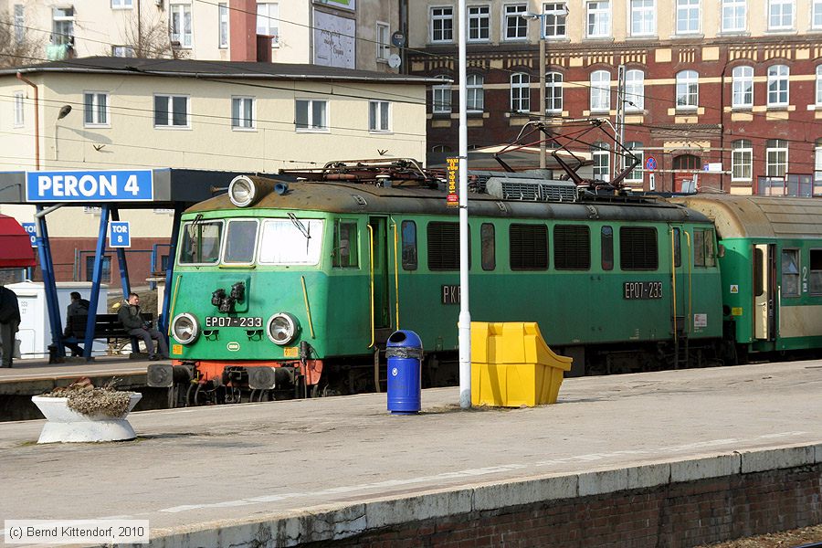 PKP - EP07-233 Lok EP07-233 im Bahnhof Szczecin Główny am 18. März 2010.
