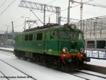 Electric locomotive EP07-345 with fast train "Konopnicka" from Suwalki, at Warszawa Zachodnia station (January 30, 2004).