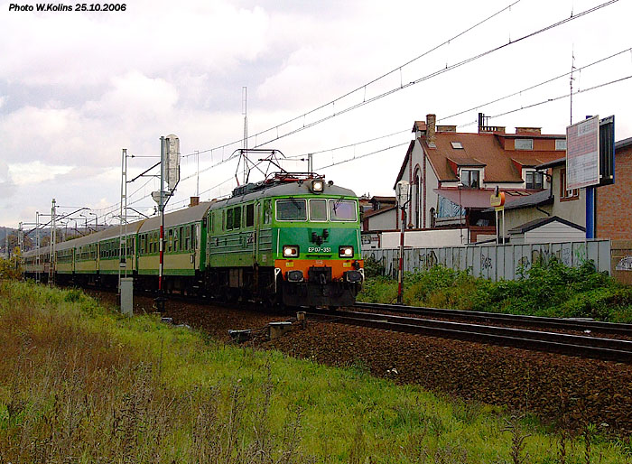 EP07-351 /Depot of Szczecin/ at Wejherowo (25.10.2006) with a fast train "Rybak" Bialystok - Szczecin. Photo W.Kolins kolins@orange.pl |